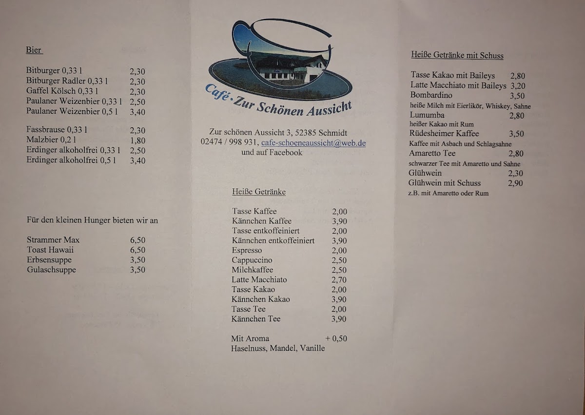 Cafe zur Schönen Aussicht - Schmidt Menu